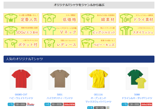 今回は例として「半袖Tシャツ」を選んでみます。