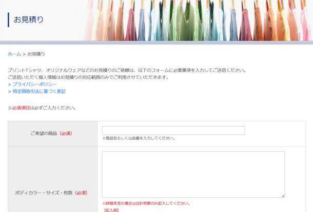 見積りフォームが表示されますので、